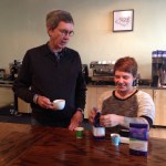 What looks like a scene from The Prancing Pony (a joke just for the Tolkien fans out there!) is actually the Counter Culture education center on Broadway Ave in Asheville. Van the coffee fan is slurping some sun-dried Ethiopian brew while Lindsay Lee looks on.