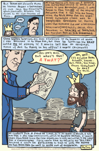 Getting sued, or even being threatened with a law suit is unnerving to say the least, and the year I spent tangling assholes with Kraft was one of the worst periods of my life. As in: Not Fun. Here’s a comic I drew about it at the time. You can click on the panels to see larger sizes.