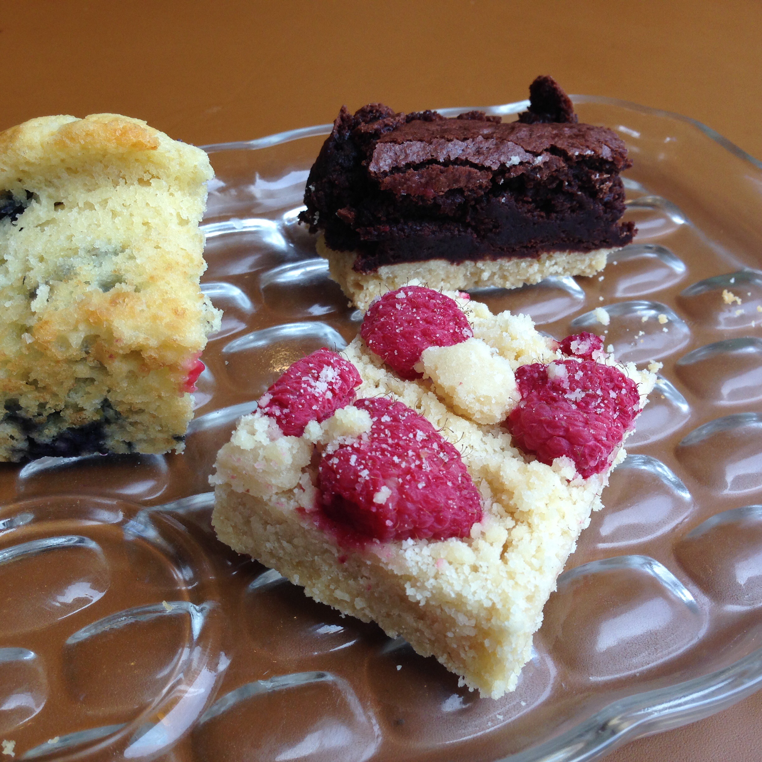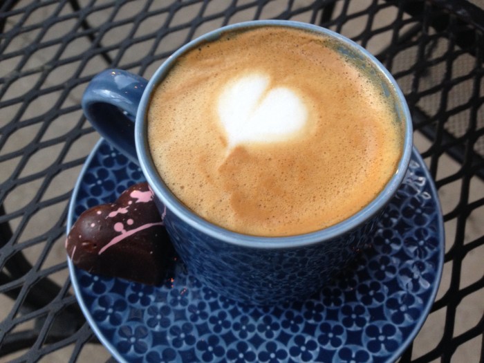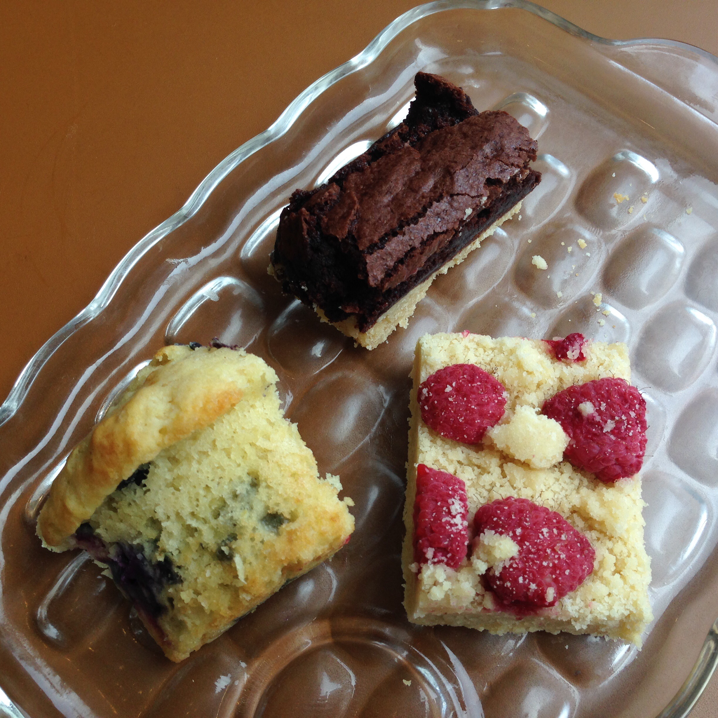 Cortado by Trade and Lore Coffee with heart-shaped chocolate truffle by 50/fifty The Art of Dessert. Various baked good samples by Mountain Nectar Bakery at Lexington Corner Market. Traditional scone with cafe au latte, and French creamy with coffee at Old Europe. Amazing stuff!