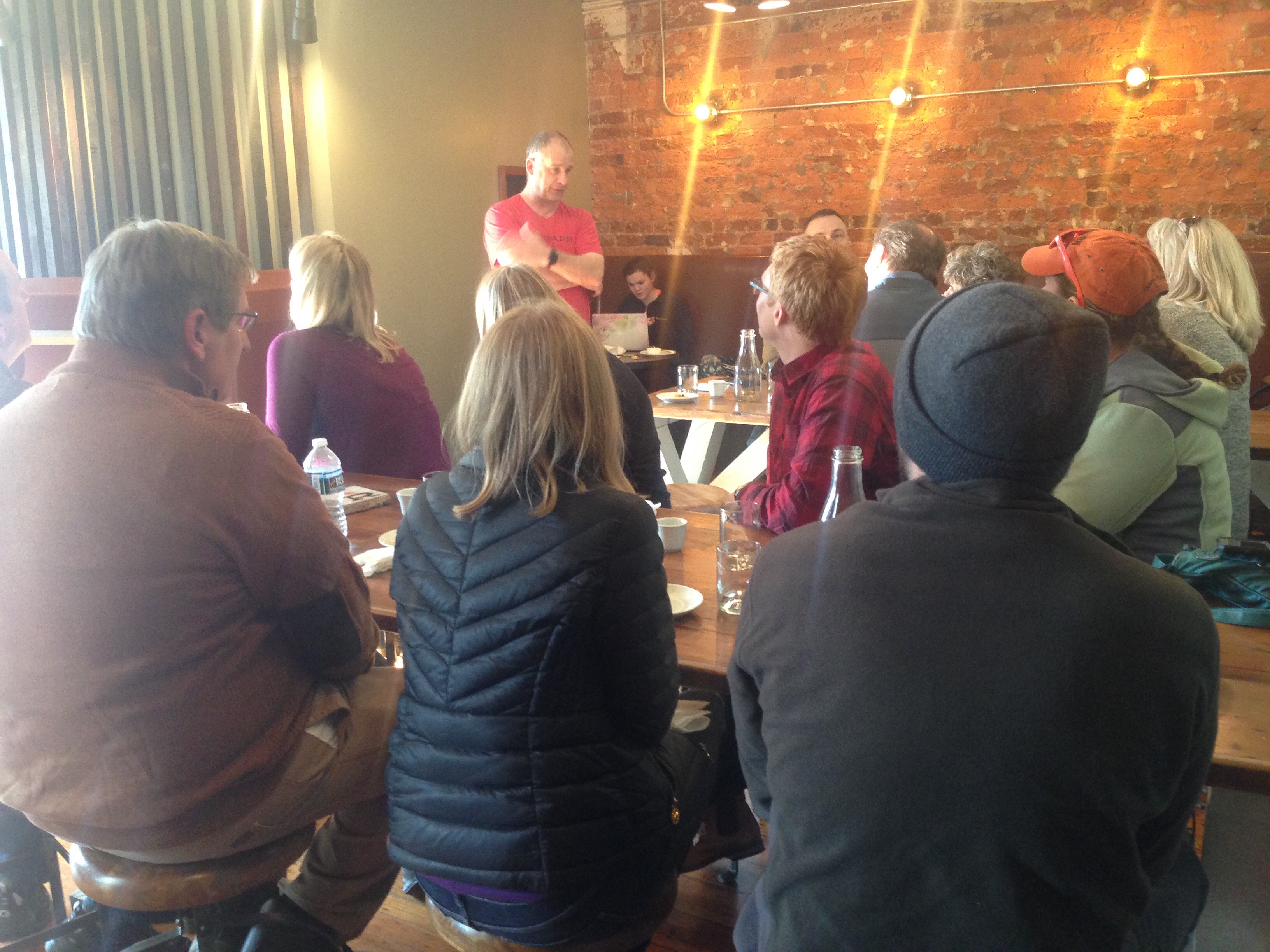 On most weekends I lead a Saturday “Brunch Tour” and a Sunday “Food Fans Tour.” Here are some random pics from last weekend. From top to bottom: Manager Joe at NIGHTBELL tells the story of Chef Katie Button; Chef John Fleer of THE RHU entertains the crowd; duck fat confit chicken wing and house made hash brown at BHRAMARI BREWHOUSE; shrimp n grits at STRADA; bulgogi bibimbap at KOREAN HOUSE. Fuckin aye. That’s not even a 1/4 of what we ate this time around! I sometimes can’t believe how much of a good time I have on these tours. I know the patrons love them too, and the restaurants seem to really enjoy having us there as well. Talk about stumbling ass-backwards into the greatest job on Earth. Yeah man. Thanks to Asheville Food Tours, for hiring me, and thanks to all the partner restaurants, and the clients. You make it fun!