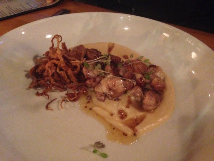 Yes, I ate 26 chicken wings this week, but that don’t mean I ain’t like some fancy eatin’ too! From the top down: chicken livers, octopus, and oysters from RHUBARB. Pasta, crab bisque, and sweet breads from THE ADMIRAL. two amazing venues that are serving some of the best fancy eats in Asheville! I apologize about the quality of these photos. I have long-observed that the nicer the venue, the more difficult it is to get a great picture, because of the ambient lighting.