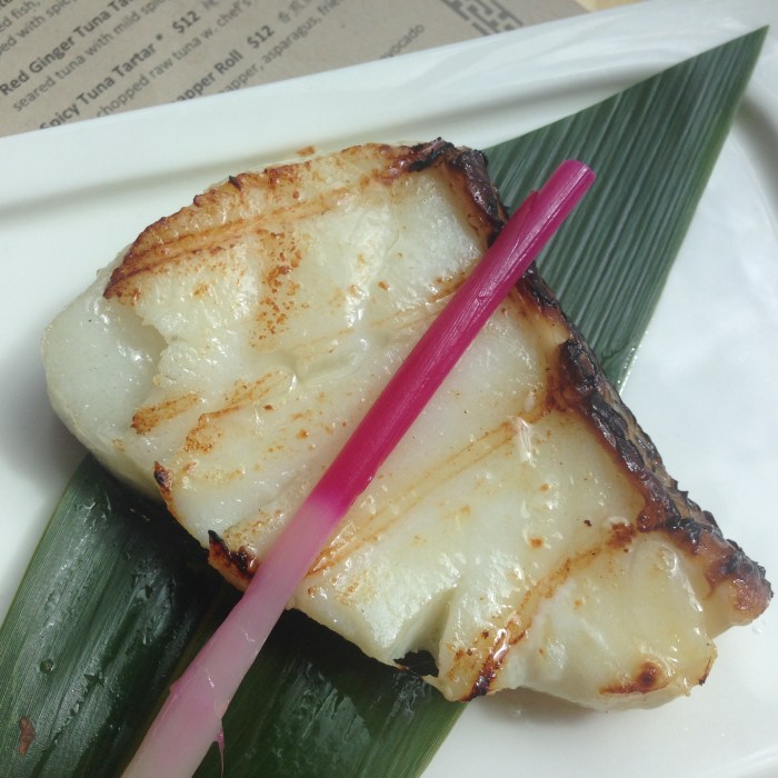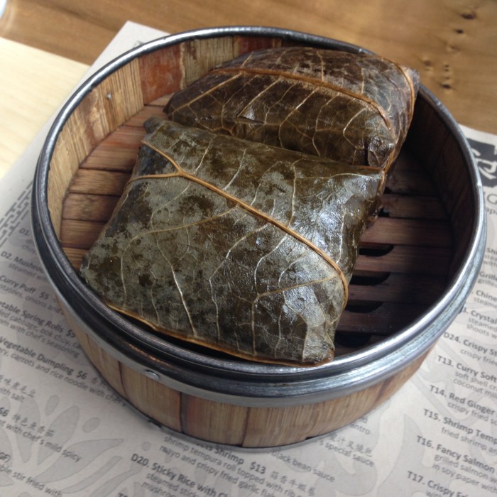 Photos top to bottom: Chicken feet; My chicken foot struggle (photos by Mai Medvedev); A gorgeous piece of sea bass with pickled ginger; Smoked duck with citrus miso, diced ham, and sweet potato; Crispy shrimp with jalapeño; Beef meets shrimp roll; Szechuan wontons; Sticky rice with chicken; Pork belly gua bao. Not pictured: Shanghai style pork dumpling & beef noodle soup. All of the food was great! Except that I actually did not like the chicken feet… but the rest was awesome! Thanks Mai, Stephen and Red Ginger!