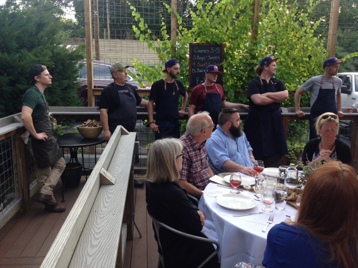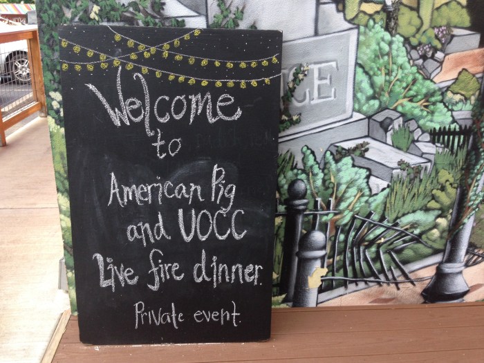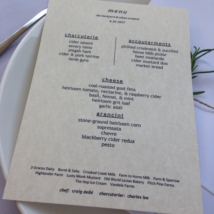 I was lucky enough to get a press pass to a beautiful, delicious, very filling and meaty 5 course dinner at URBAN ORCHARD that was the first in a series of “Live Fire” cook outs and cider pairings they hope to do over the coming months.