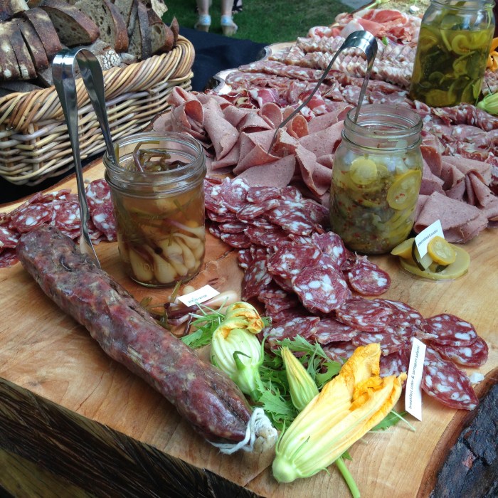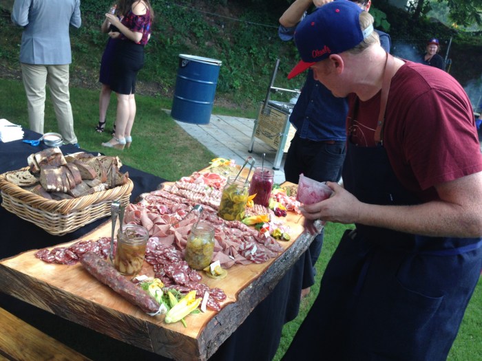 The food was provided and prepared by cooks and chefs including James Beard Award Finalist, & American Culinary Foundation Chef of The Year, Craig Dheil from CYPRESS & ARTISAN MEAT SHARE in Charleston, SC. Also present was Charles Lee from THE AMERICAN PIG cured meats and charcuterie, as well as Chefs Nate Sloan from HICKORY NUT GAP FARM and Greg Remter who I am most familiar with from his time spent in the kitchen at SOVEREIGN REMEDIES.
