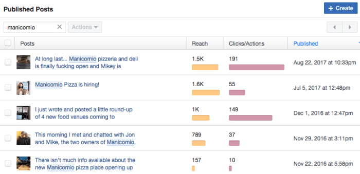 Tracking my own Facebook posts. Interest in Manicomio steadily increased over the 8 months that we all awaited their arrival.