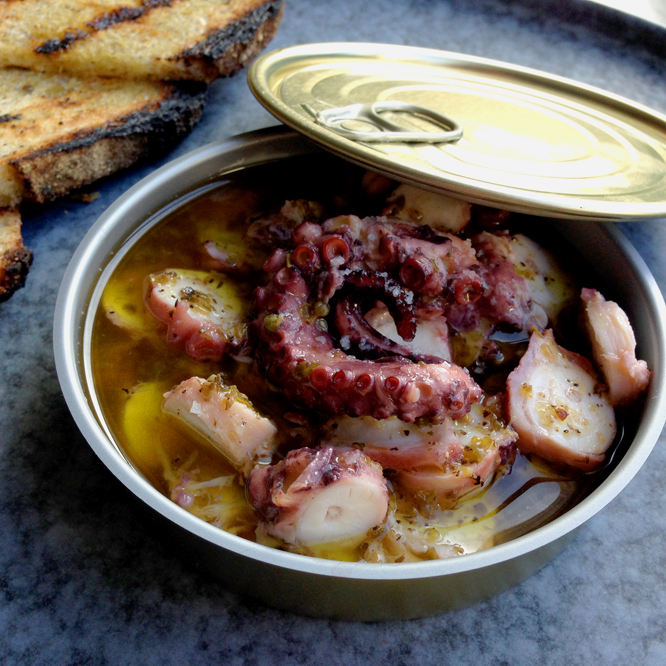 Tyrokafteri aka Spicy cheese dip was the next plate to hit my table, and wow, it was awesome in my opinion. The house-baked, charred bread was killer! I love a good bread, and this shit was GOOOOOD. The creamy, spicy arahova feta cheese is made from goat’s milk imported from Greece, and was one of two “canned” dishes that were served that night. Don’t let the presentation fool you, though, neither dish was actually canned, but were both house-made foods — the cheese dip in this case, and some pickled octopus that came later — that were simply served in cans, in a playful way, that I found both amusing and quirky.