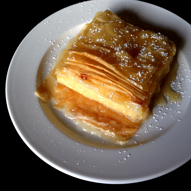 Toward the end of the meal, my server asked if I had saved room for dessert. Yes (no) I had (not)! So I ordered one. They sent two. By this point I was already almost in a coma, so I took one or two bites of both of them… and then nearly crushed one of them… and then took the rest of the other one home.. and crushed most of it later that night. (heavy exhalation of air) So full of Greek things.