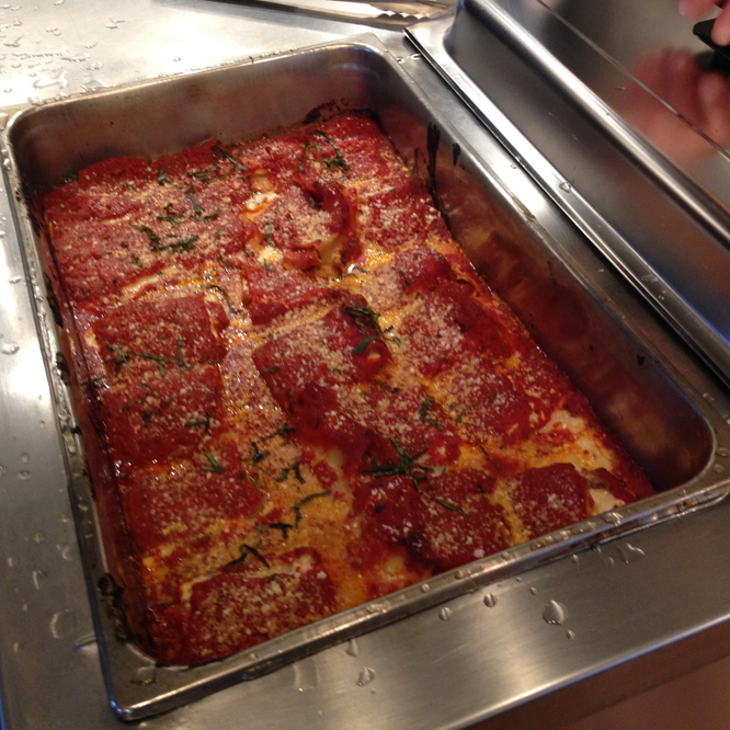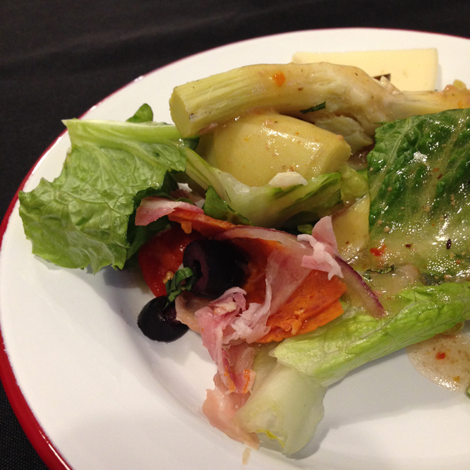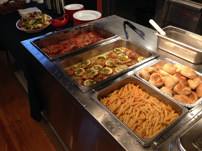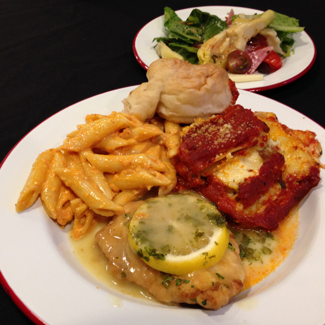 I was invited, along with friends and media folks to come try the food and sit in the space at Aunt Mary’s — which is located right behind Manicomio — and boy howdy, the food was killer. Like, really fucking good. Like, awesome, solid, no nonsense, Italian Food, with a capital “F.” And, as should always be the case with a Italian fare, there was a shit-ton of it! An enormous, beautiful Antipasto (above), a giant muhfuckin’ tray of the best veggie lasagna I think I’ve ever had, a perfectly cooked Penne alla Vodka, and some really really tasty Chicken Franchaise. All cooked just right. I loaded up my plate, ate the fuck out of all of it. and went back for seconds, which was the theme of the night for all of my friends as well.