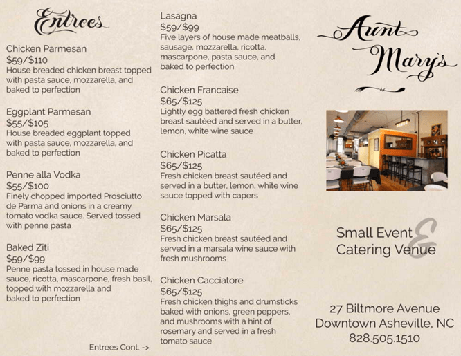 So yeah, call Aunt Mary’s Catering Kitchen the very next time you need some nice big trays of delicious, hearty, expertly made food for an event! They do on-or-off-site catering, so if you need a space for your event, the room at Aunt Mary’s is great! Located right downtown, it seats 40 inside, with 20 more covered seats outside, and any portion of the patio can be sectioned off for larger parties interested in outdoor seating. Brand new renovations and build-outs have made this one of Downtown’s nicer indoor/outdoor spots.