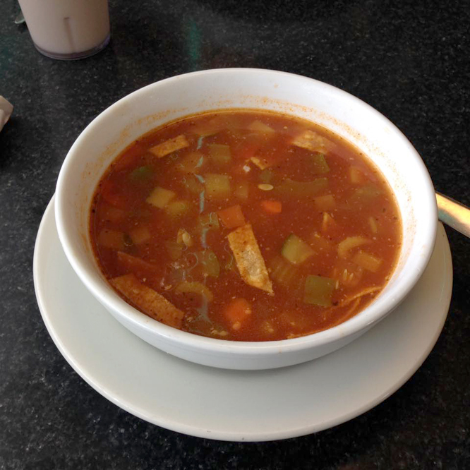 8) TORTILLA SOUP – My mom has a wee cabin on a wee mountain up there in Fairview, NC, and recently she and I took a quick road trip together to visit the ol’ cabin, do some cleaning and weeding, and spend a little time with each other. There’s a place to eat out there called Nachos and Beer, that my Mom really loves, and she’s been trying to get me to try their tortilla soup for a long-ass time. So after puttering around the cabin for a bit, we loaded up the car and headed back to Asheville, with tortilla soup on our homeward agenda. If you haven’t been to Nachos and Beer, it’s really cool looking on the outside, as it was originally designed and built to be a replica of a 1950’s diner, and the OG owner was trying to do that whole retro Happy Days thing as a theme. I have to say, cheesy themes don’t usually go over very well around here, so unfortch his restaurant closed, and then the cool building sat empty for years, until Nachos and Beer came along, and started rocking some really tasty Mexican food, sort of a “Cali” style as opposed to “Tex Mex.” The tortilla soup comes in a really big bowl, with a tomato-y broth, and various vegetables floating around in it. It’s got a mild chili flavor to it, but it mostly just tastes like a very nice vegetable soup. It has some sliced-up tortillas in it, and you can ask for more if you want to. The people are very friendly, and charming, the service was great, and the price was right! Next time you’re out that way, and you need some food, pop into Nachos and Beer, and you won’t be disappointed.