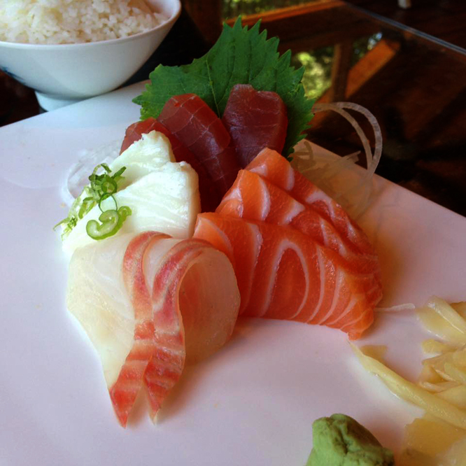 2) SASHIMI LUNCH SPECIAL – So, with all my recent trips out to Sawhorse on New Leicester Hwy, I couldn’t help but notice the big, beautiful building that houses Green Tea sushi that’s is on the way, so I went there with my mom, and we both loved it! We went for lunch, and my mom got the bento box, while I ordered the chef’s sashimi plate. A healthcare professional recently advised me to lower my cholesterol al li’l bit, so you’re gonna see me eating a few more avocados, and things like raw fish. I’m no expert on Sashimi, but mmm-mmm-mmm-mmm-mmmmm, this little ol’ pile of colorful ocean proteins was fucking awesome in my opinion. Of course, I am more accustomed to eating large heaps of meat, cheese, and bread arranged in various formats, so when I saw this rather small looking assortment of shapes, I immediately thought, “I’m gonna be hungry after this lunch,” but nope! I’m learning that even a small stack of pure proteins — in this case, salmon and various types of tuna — can make you feel like you’ve eaten something substantial. I was actually quite full by the time I was done! All the raw fish shapes were real good in my opinion, and there was pure white looking kind of tuna that was the super-star of the quartet. This sashimi was fresh, and smooth, silky, easy to eat, and went great with the pickled ginger and wasabi of course! My mom loved her bento box, so she and I will be back to Green Tea for sure, and I’m excited to bring my GF, Dawn, who’s been encouraging me to eat sashimi for years. The decor, atmosphere, and service were also impeccable. Great experience all around, highly recommended!