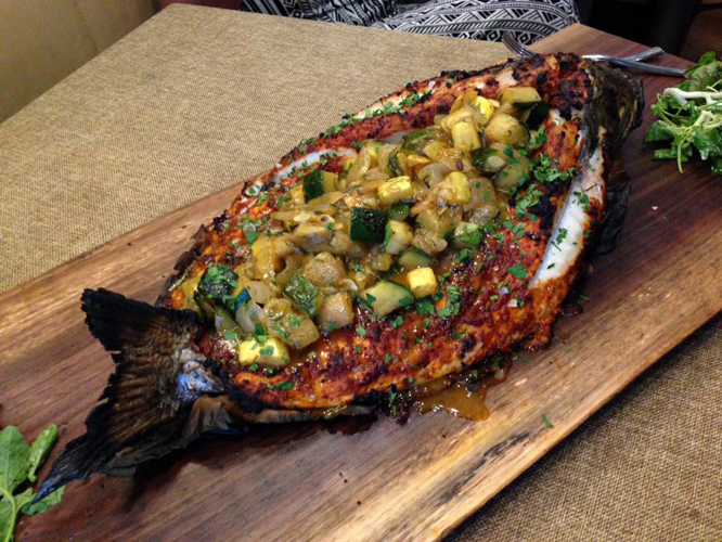 1) WHOLE ROASTED HALIBUT – I was recently invited to a press thingy at the brand new Greenhouse restaurant and bar on Rankin Ave, which is owned by Nobel Cider Company. Press thingies do not always give the best indication of what the actual experience of dining at a new venue will be like once they get settled in, and this press thingy was one of those. It was set-up cocktail party style, and when another round of food samples came out, everyone jumped-up, and there was a photo frenzy, followed by a we-all-showed-up-hungry-as-fuck feeding frenzy of food writers, bloggers, and other jackals. Now, I’m a fuckin’ princess, so that was two too many frenzies for me to be part of, and I didn’t stay long, which meant I missed out on some of the food. Womp womp. Buhhht the bites I did try were AMAZING, and I can not wait to go back and eat my way through the rest of their menu, in a more dignified manner! Pictured above is the whole, roasted and stuffed halibut that, to me, was the stand-out dish at the press party, not only because of it’s impressive presentation and service, but the flavors and consistency were just right. A perfectly cooked fish with a flakey, though substantial and meaty texture, filled with a Summery, savory, medley of squash, herbs, and aromatics, that were smooth and tender and comforting, I could have eaten a million tiny samples of this dish! We also tried some braised beef that was excellent, and I got a glimpse of the desserts, which looked really tasty, so I’ll definitely have to go back for those. In the meantime, go check out the Greenhouse yourself! If the food that we were served at the press thingy is any indication of what we can all expect from Chef Gavin Baker and company in the future, then YAY! I am excited.
