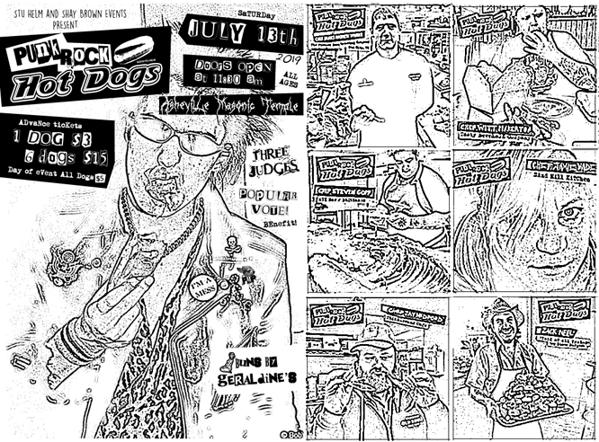 Congrats to Chef Steven Goff fromAUX Bar and Brinehaus Meat + Provisions for his stellar performance and run-away win at the Punk Rock Hot Dog ~ Challenge at The Asheville Masonic Temple on Saturday July 13th, 2019!