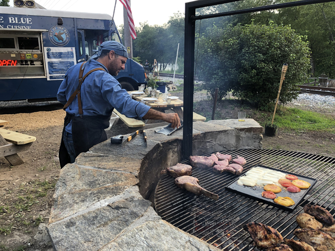 Above: Husband and wife team, Chef Santiago Vargas tends to the veggies on the grill, while Farrah Razuri-Vargas tends to the patrons at their tables.