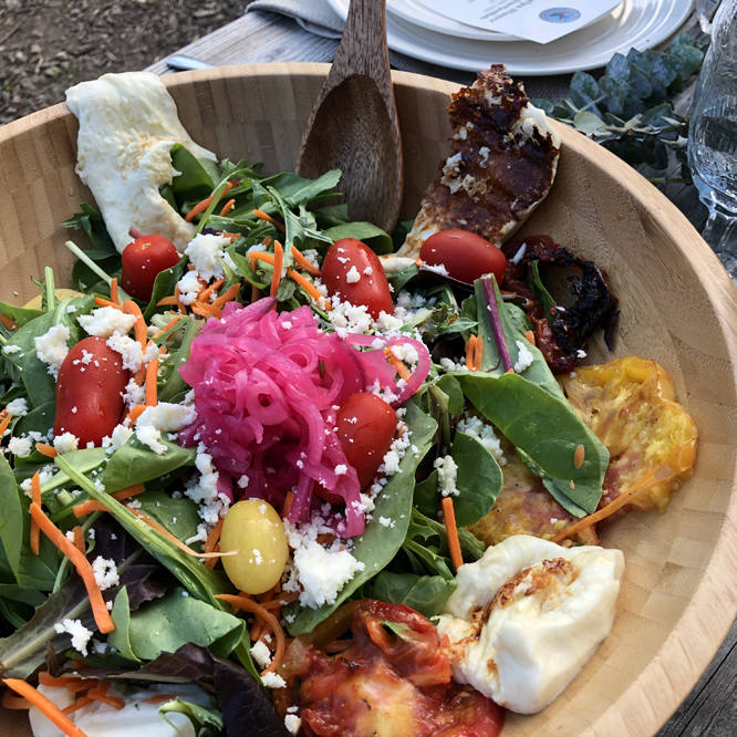 I mean, Jimminy Crickets, just look at that thing! The grilled tomatoes, the fresh teeny tomatoes, the pickled onions and the cotija cheese crumbles all looked really pretty with the salad greens and all of it, including the salad dressing (which Chef Vargas told me had, like, 30 ingredients in it!) tasted so good together! Best. Salad. Ever.