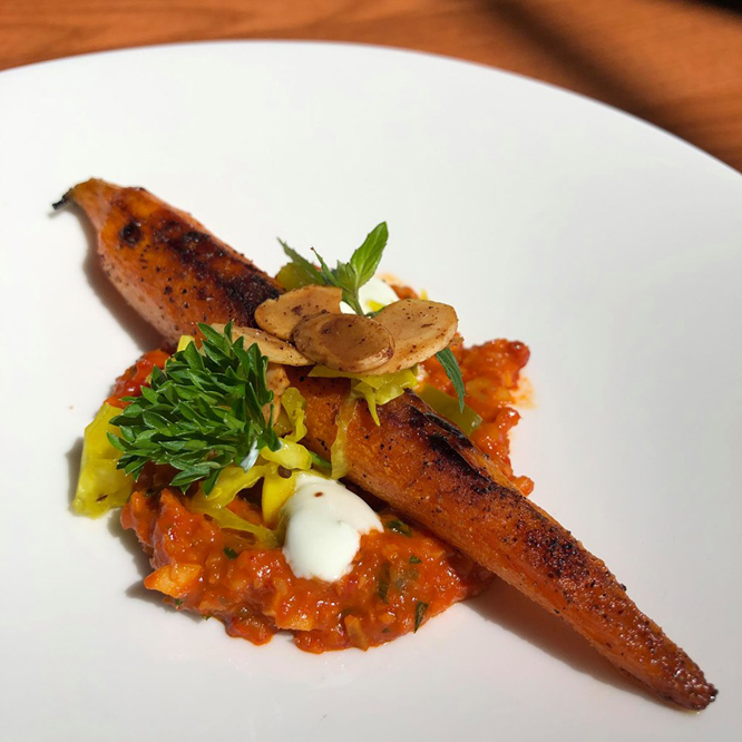 2) TOUR FOOD! – I am a fan of the brand new Noble – The Greenhouse restaurant on Rankin Ave, and I truly feel as though Asheville has been very fortunate that yet another world class restaurant has opened up in our humble little town. I go into The Greenhouse with Asheville Food Tours once or twice a week, and we often treat it as a “Centerpiece” or “Signature” stop, where we stay a little longer than at a regular stop, and get several small bites with a nice drink. Last week, Chef Gavin Baker sent out a perfectly roasted baby carrot for each of us. It was so fucking cute, I wanted to squee myself to death, but instead I took a picture, and then ate it, and as usual, BOOM! Mind. Blown. This guy (Chef Gavin) can fuckin’ cook, and this carrot was to die for. For real. I have never in my life said that about a carrot. #truestory It was roasted to perfection, and served on a bed of thick, savory romesco sauce, a little bit of house-made chowchow, a dollop of cream, some greens, and a few toasted almond slivers. Jesus Eff. I ate mine in three bites, making sure to get a little bit of everything in each bite. (Keep in mind, this was tour food, so it was much smaller than their usual menu items.) When I returned to my tour patrons and their clean plates, they were all raving about it. It was our second stop on the tour that day, and at the end of the tour, everyone agreed that it was all the food was awesome, and that this wee little carrot was one of the best things that any of us had ever eaten anywhere. Get thee to The Greenhouse if you want to try this lovely carrot preparation, as well as many other delightful dishes.