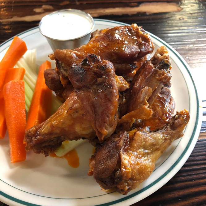 5) WINGS – Brined in buttermilk, fennel, and hot sauce, smoked to perfection, then fried to order, tossed in sauce again, and served hot ‘n’ crispy with fresh carrots, celery, and house-made ranch. The meat on these wings came right off the bone, and every bite was an awesome combination of chewy, crunchy, meaty, spicy, and HOLY FUCKIN’ FUCK THAT’S HOT!!! I burned the fuck out my mouth on these dang wings, so be careful out there people. Yes, shut up, I was back at Buxton Hall Barbecue not even a week after eating those delicious shramps featured above, and while those were predictably no longer available, these chicken wings had magically appeared out of nowhere, so boom, ordered, loved. I’m a wing fan in general, and like all wing fans, I have my preferences. One of my personal litmus tests is the ol’ does-the-meat-come-right-off-the-bones factor. If a chicken bone puts up a fight to hang on to any of the “good” attached to it, that chicken wing has not been cooked long enough in my opinion. These wings were cooked long enough. Now, I should say that in terms of personal preferences, I think my friend Paddy would have hated these wings. He’s got a whole different set of criteria than I do, and we don’t always agree on wings. And that, my friends, is exactly why there’s always a panel of 7 or more judges at the Wing War every year. Every wing fan has their own list of do’s and don’ts, and for this wing fan (talkin’ ’bout me here) these wings from Buxton nailed it on every count. PS – I’m also a Wings fan, as in the Detroit Red Wings! Woohoo! Here comes the Hockey season, Y’all! Who’s excited? (silence) I said… Aaaaarrrrre you rrrrrrrready for hockeyyyyyyyyyy??? (silence) Football? (wild cheering, horns blowing, cars being overturned, and whole city blocks being set on fire) Yerp.