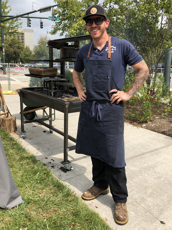 The theme on Saturday was MEAT, and hell yes, I like meat. I was vegetarian when I was younger, it was great, very healthy, please do that, and leave the meat for old man me to die happy with a large piece of in my mouth. As luck (or great planning) would have it, the very first thing that folks entering Chowchow 2019 happened upon was local meat being cooked on a fancy locally made custom grille by Chef and butcher, JT Debries of Intentional Swine! Way to lead with a shoe-in, ChowChow. I see your game.