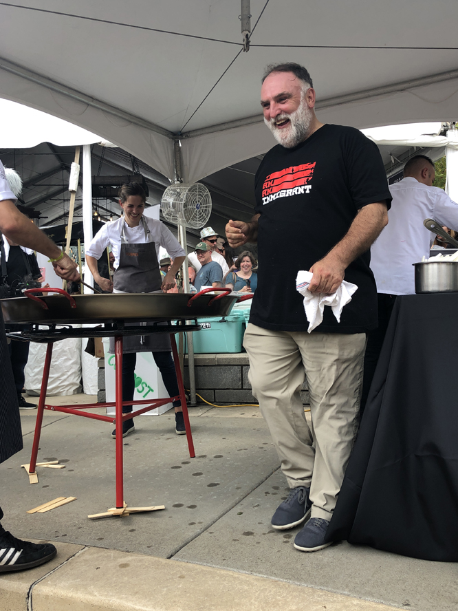 ABOVE: Chef Jose Andres addresses the crowd. Also on stage: Felix Meana and Chef Katie Button.