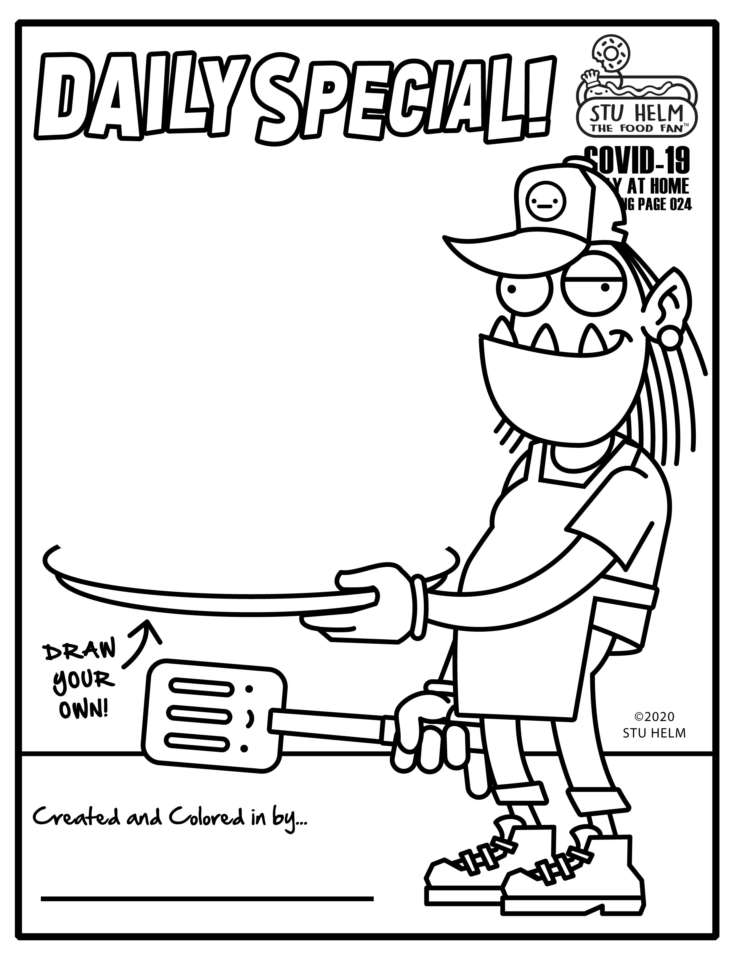 Howdy, Y’all! Did you know I was a professional illustrator for, like, 20 years? True stories, Yo. Anyhoo, I’ve been making a series of “COVID-19 Stay-at-Home Coloring Pages” for kids (and adults) who are stuck at home for the next 30 to 60 days. They are all food related, in keeping with my usual schtick.