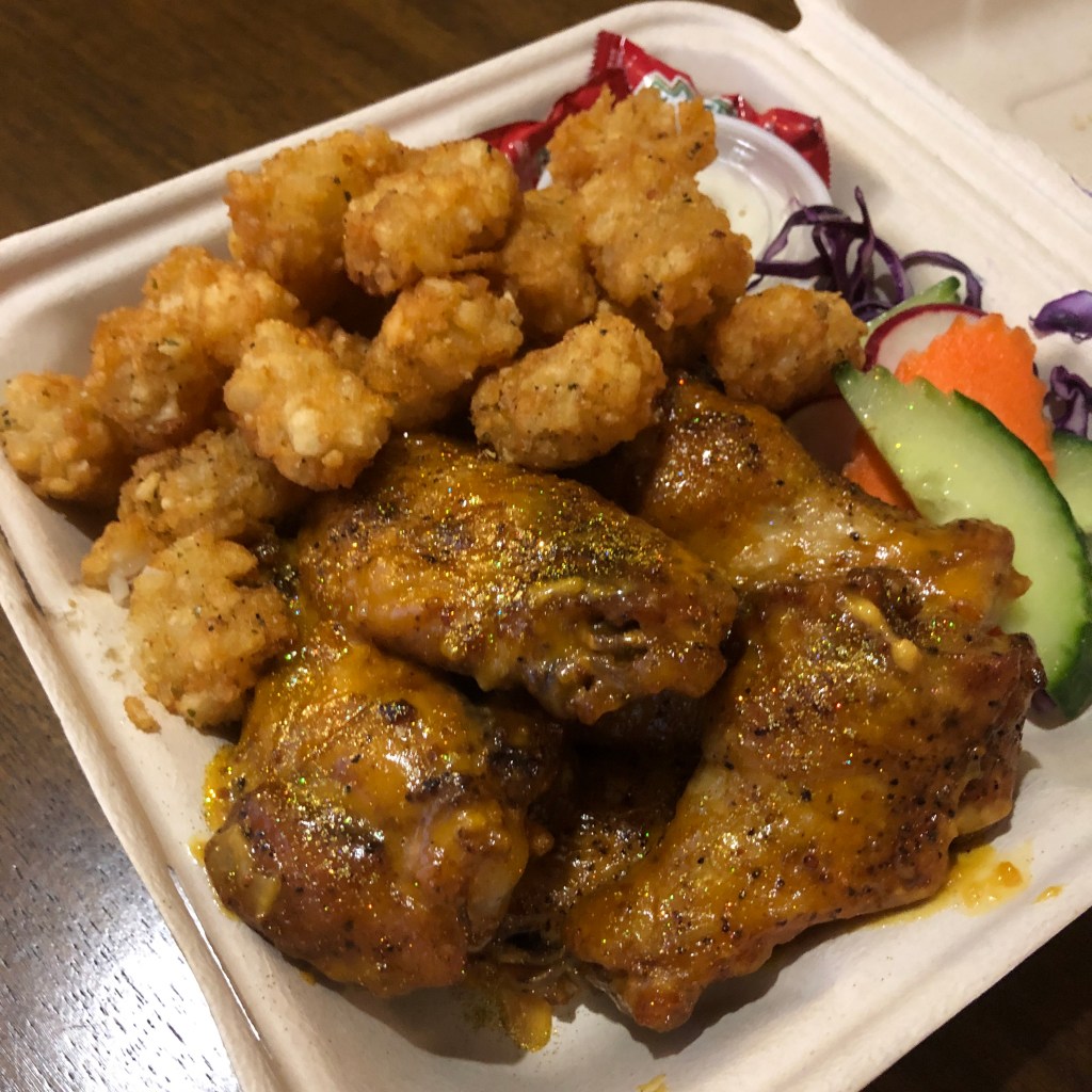 Got those Bling Wings from Chef Chazzy at at Deli Llammma food truck. You can’t really tell from these pictures, but these wings are covered in edible glitter! They looked stunning! And they tasted delicious. Deli Llammma is doing “Wing Thing Thursday” every week with a different kind of specialty chicken wing. They are parked at Catawba Brewing Company on the South Slope every Thursday, slingin’ the wings! So far, Chef Chazzy‘s wings are batting 1,000 with me and Rick, in our own AVL Wing Thing podcast adventures! You can listen to our podcast on Facebook, at Stu Helm: Food Fan.