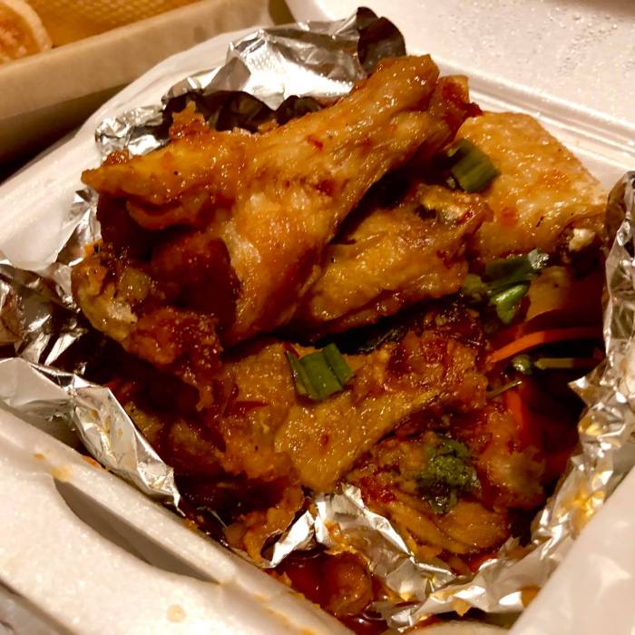 The wings were excellent! They were sweet and hot, and had a very nice fish-sauce umami added that made them unique. They were cooked just, and came off the bone very nicely, the spice level was about medium-high, not over-the-top, and they tasted great fresh, as well as re-heated. High makes all around!