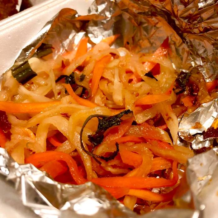 I kinda wanted a smooth, cooling, dippin’ sauce of sauce kind, but the crunchy and super-flavorful Asian slaw salad dealio on the bottom was fantastically good, and more than compensated for the lack of dippin’ sauce.