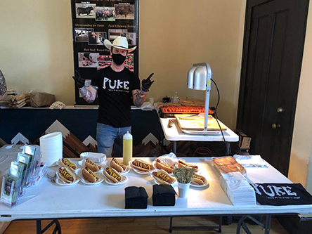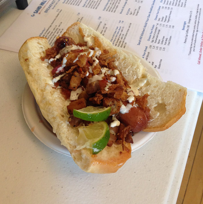 And finally I want to thank my new friend, and the new executive chef at my imaginary restaurant, Puke. Chef Bennet Depew from Brasstown Beef stepped up at the very last minute, threw on a Puke shirt, and started slinging hotdogs under the Puke banner. Y’see, one of our vendors was unfortunately unable to attend on the day of the event, but I had a secret contingency plan for Puke to step in if such an emergency should occur! I enlisted Chef Depew at 10:59am (doors were at 11:00), and without hesitation, he said, “Can I just throw a dog on a bun, squirt mustard all over it, and call it something like, “Saucisse avec sauce American classique?” And I replied, as I wiped away a tear, “That’s exactly what Puke would do. You’re hired.” It was a beautiful moment in hot dog history, and Chef Depew did a beautiful job! Even though we came in last place, we did not have a low score! None of the dogs were panned by the people or the judges! Not even Puke’s!