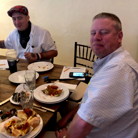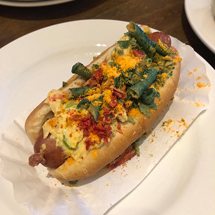 They were repped by Catering/Events Director Alex and GM/Pit Master Collyn and served up “an all beef frank ‘bowl’ with red and green relish, mustard, and EZ cheese, in a potato bun rolled in umami house made ‘keef’