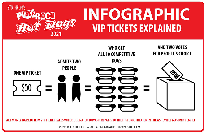 I made a quick infographic to help explain the VIP ticket sitch for Punk Rock Hot Dogs 2021. They are available here: https://www.eventbrite.com/e/stu-helms-punk-rock-hot-dogs-competition-tickets-160260831461