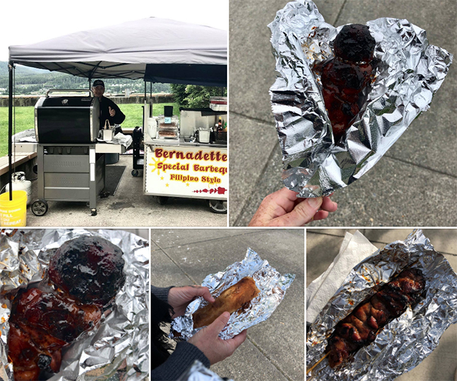 Three of my favorite bites in Juneau, Alaska were from Bernadette cafe /famous bbq stick’s food cart. I got chicken, pork, and “turon,” aka banana lumpia! All three were frickin’ great! Highly recommended if you find yourself in Juneau.