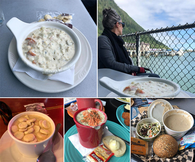 Clockwise from top: I think that this chowder from the Alaska Fish & Chips Company at the Flight Deck was my fave from among all the chowders I tried in Alaska.