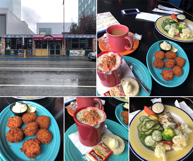 We were only in Anchorage, Alaska long enough for one meal, and I think we chose well with Humpy’s Great Alaskan Alehouse! Dawn got a grilled halibut and veggie plate, which was very good, and I got very tasty crab cakes and some of the best chowder I had on our trip. Recommend.