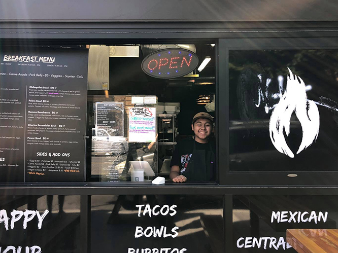 My nephew and I shared a very tasty breakfast taco trio from a place called CHAR’ Latin Grill on Belmont Street in Portland, Oregon. Nice people good food. I recommend!