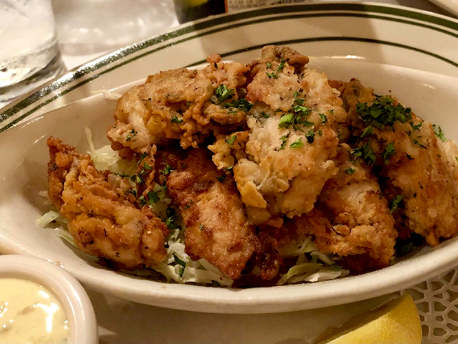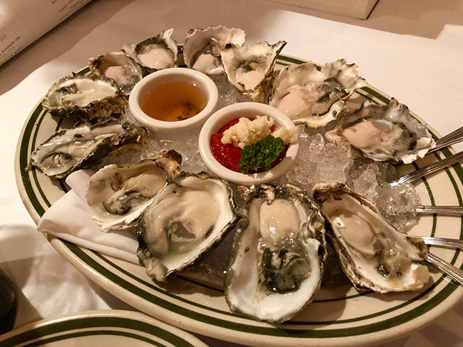 We had a classic, old school, sea food experience at Jake’s Famous Crawfish in downtown Portland, Oregon while visiting my nephew and other friends there. Crab Louie, pan fried oysters (the highlight of the meal for me!), raw oysters, salmon, bouillabaisse, etouffee, and shrimp cocktail! Yum!