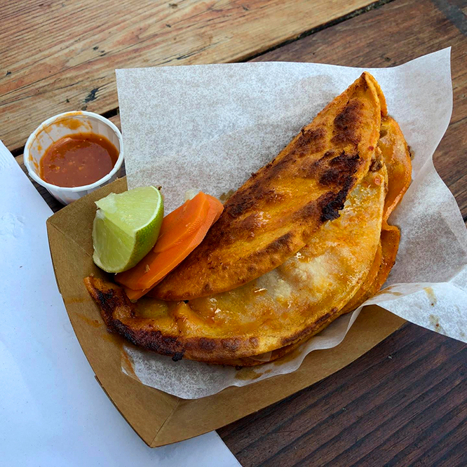 When I told the barista from The Fresh Pot coffee shop in Portland, Oregon that I’m a food blogger from North Carolina, they were excited to recommend that I go to Taquería Los Puñales, so I did, and WOW! This “Barbacoa Jalisco” style taco was truly one of theee best tacos I have ever had in my life! After being assembled, the taco is put back on the grill to “crispen in its own juices.” It was fantastically good and tasty AF. The folks who worked there were super nice, and the set up was cute too. Recommend 100%.