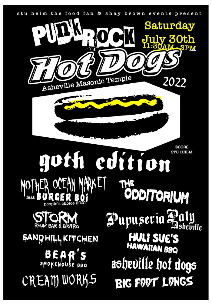 Punk Rock Hot Dogs is the whackiest, wildest, craziest annual food event in Asheville, and this year we have the best line-up of Gothic Glizzy Gladiators we’ve ever had: