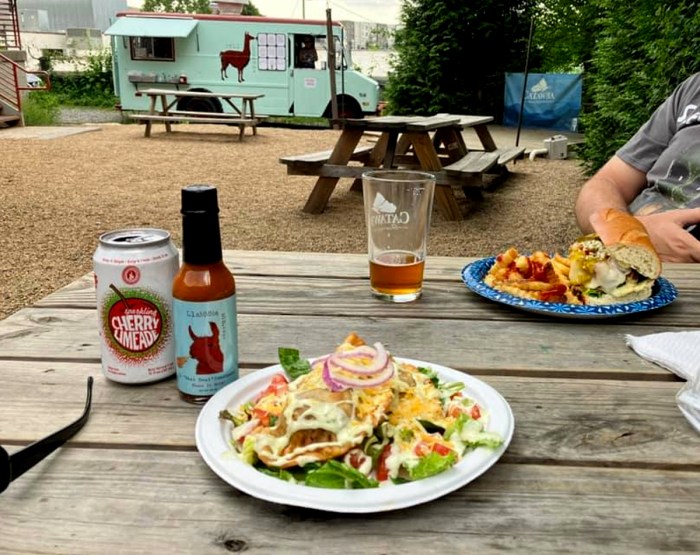 People give me a lot of hot sauce. I have a fridge door full of it! To state a fact, I will never run out of hot sauces, but I do sometimes run out of a hot sauce, and when I do, that’s a sign that I really liked that particular hot sauce. I scored a bottle of Chef Chazzy Edwards’ Llammma Spit hot sauce somewhere once, and when it ran out, I mentioned it the next time I visited her truck Deli Llammma Food Truck, and she gave me another bottle, and now that one is about to run out! It’s not as if I don’t use the other hot sauces in my fridge door. I do! I try to use ’em all. Some are more hot than sauce though, and I only need but few wee little drops to light my whole head on fire, and I like those, but the Llammma Spit is thicker than usual, and has absolutely achieved a golden ratio of heat vs flavor.