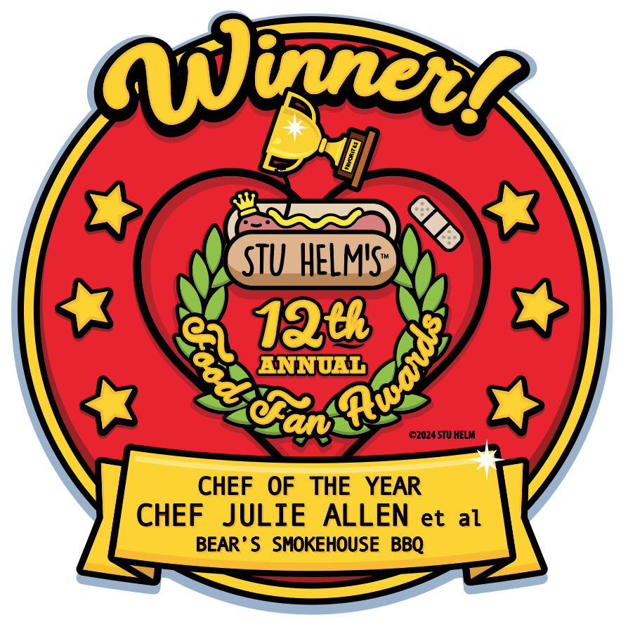 I first met Chef Julie Allen from Bear’s Smokehouse BBQ just a couple of years ago, but in that short time I’ve come to know her as a staunch individual with a great sense of humor; a strong person with a big heart &good soul; and a dedicated employee with an all-but-unlimited capacity for hard work. And that’s what I knew about her BEFORE the storm hit! After it hit, Bear’s Smokehouse BBQ became ground zero for World Central Kitchen and other food aid efforts that started the moment things got bad and continued day after day for weeks on end and continues to this day. The whole Bear’s team pulled together with WCK and displayed herculean tenacity and endless energy reserves to help provide thousands and thousands of free, hot meals, and because it was from Bear’s the meals were *delicious* and comforting, just when we needed it most! It was a matter of survival for no small number of people, and I will never forget Chef Julie, and all the folks at Bear’s SmokeHouse BBQ for what they did and how they did it. I’m both humbled and proud to give my Chef of the Year to Julie Allen, who kicks so much ass herself, but also to every single member of the kitchen team at Bear’s and WCK who worked long hours doing tough work, and to the chefs and cooks all over WNC who helped friends, family, neighbors and strangers alike get through this incredibly difficult time. If I could name you all, I would! You are all heroic figures in my eyes.