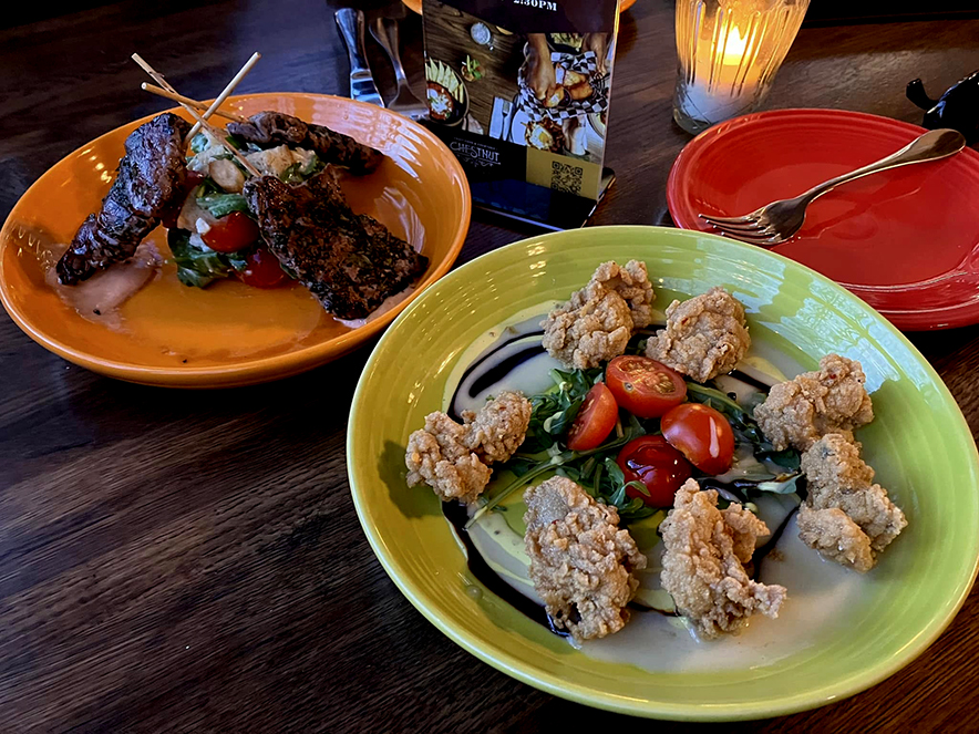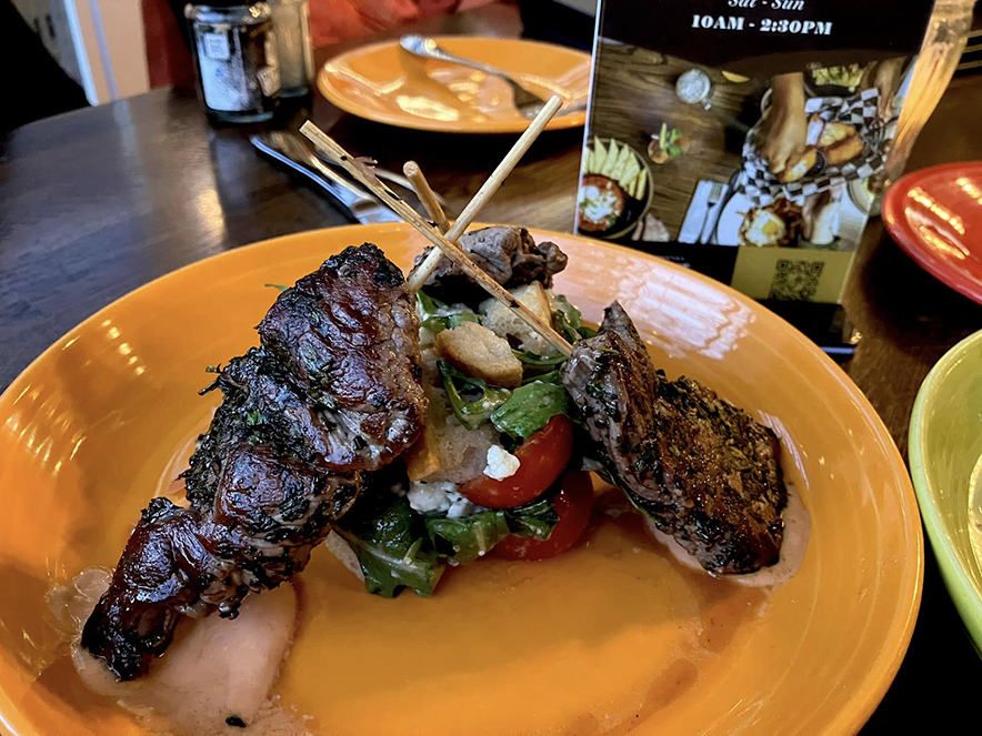 Again, my mother and I were sharing this meal, and if I my mother is anything like me (hint: She’s exactly like me!) I know that she was wanting them all to herself! Ha ha! They were so tender and moist, they came right off the skewers and were silky smooth with crunchy bits of sear. The Mediterranean spices were very flavorful and punchy, and the salad and sauces were perfect accouterment! Thank you, Corner Kitchen, for this wonderful meal and dining experience! Good luck with your rebuild and a speedy recovery! I know you loyal customers can’t wait to get back and and support you!♥ Asheville loves Corner Kitchen! ♥