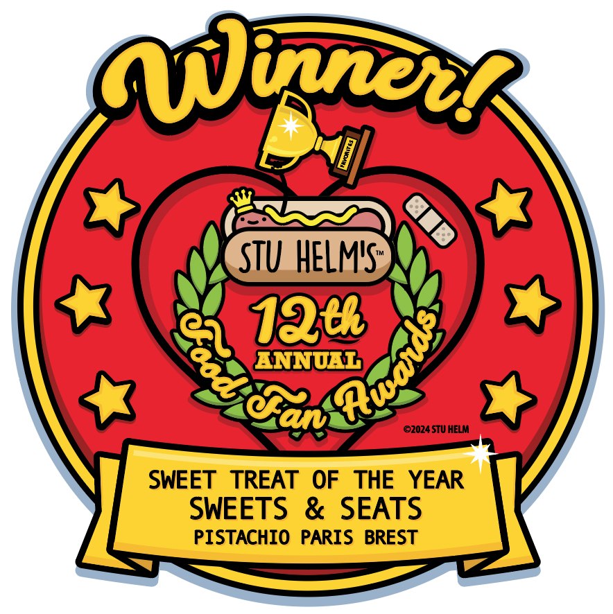 Okay, I like donuts and this thing is shaped like a donut, so I kinda bought it on whim, and then it turned out to be dreamy as fuck, and it’s been haunting my thoughts ever since. Basically, I went into Sweets and Seats one day, scanned the case, spied the pistachio Paris-Brest, and it looked pretty good in the case, so I got it, and was wondering if I had the best choice (there ‘s a LOT of tasty stuff in that case!) but when I tucked into it, it totally destroyed all my expectations, and was truly one of the best things I have ever put in my mouth. Since I had never heard of a Paris-Brest, I looked it up, and it’s a French dessert made of choux pastry and a typically praline flavored cream, thought this pistachio, which I love in any form. I had also never heard of choux pastry, so I had to look that up too. Choux pastry, or pâte à choux, is just the French word for a pastry dough made with butter, water, flour and eggs that is typically used for eclairs, profiteroles, and yes, Paris-Brest! So, this thing was not only super delicious, and creamy, and awesome, but it taught me new things. I eat a lot of sweets every year, and of all those sweets this Paris-Brest is my Sweet Treat of the Year! Thanks you, Chef Kanas Lam for all of the amazing pastries you provide for your regular customers, of which I am one!