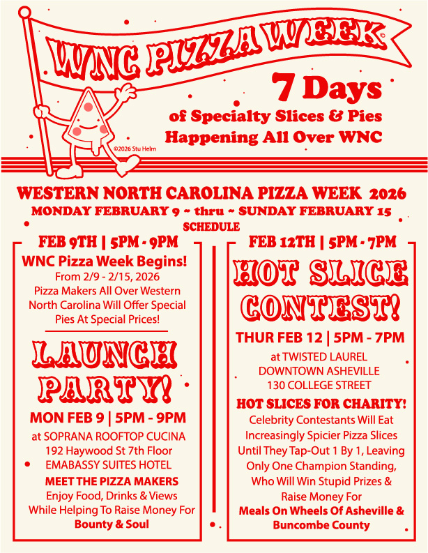 The 2nd ever WNC PIZZA WEEK gives pizza lovers in Western North Carolina a chance to try some very special slices & pies at a great price from our amazing local and regional pizza makers!