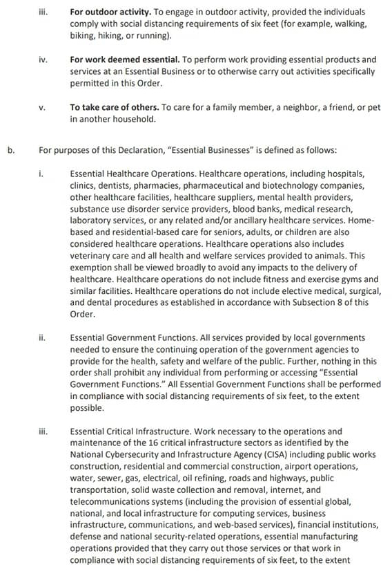 • Eliminates the distinction between essential and non-essential businesses
