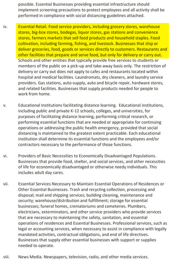 As far as the parts of the state-wide order that relate to food go, they are virtually identical to the ones outlined by the County, and highlighted in yellow by me. Again, if you want to read the entire Stay at Home order from Gov. Cooper, click HERE.