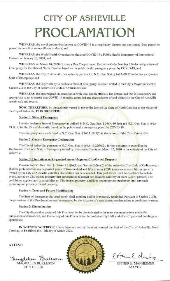 State of Emergency State from City of Asheville