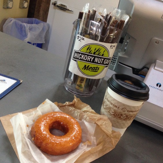 image Published November 2, 2015 at 565 × 565 I brought coffee and a donut from Vortex to Catawba. They’s cool like that. Also: Mmm… jerky.