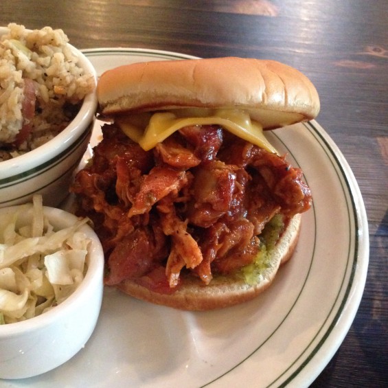 image Published November 2, 2015 at 565 × 565 This pulled BBQ chicken sandwich from Buxton Hall BBQ was actually a little too sweet for me. I ate every single bite though!